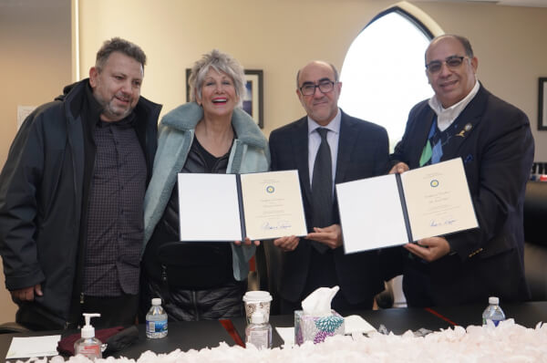 American Arab Chamber of Commerce President Hassan NIjem, Cook County Treasurer Maria Pappas, Mosque Foundation President Oussama Jammal and Chamber Board member Maher Khattab at the Mosque Foundation Tax Refund Workshop Friday Nov. 5, 2021 at the Mosque Foundation in Bridgeview, Illinois
