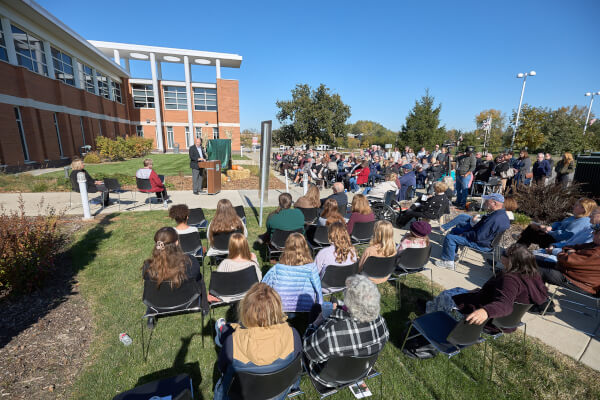 Dodge on Owens rededication Mayor Dodge addresses community gathering for the Sunday, October 26, the Village of Orland Park rededication of Village Hall in honor of the late former Mayor Fredrick T. Owens