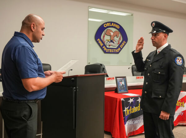 11-06-25 Jaber Administers Oath of Rank to Schultz OFPD Commissioner Mohammed Jaber administers Oath to Engineer James Schultz