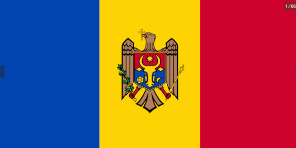 The flag features the Moldovan coat of arms centered on the yellow band—a golden eagle holding an olive branch, scepter and cross, with a shield bearing the iconic aurochs head, a long-standing symbol of the nation’s independence, pride and strength.